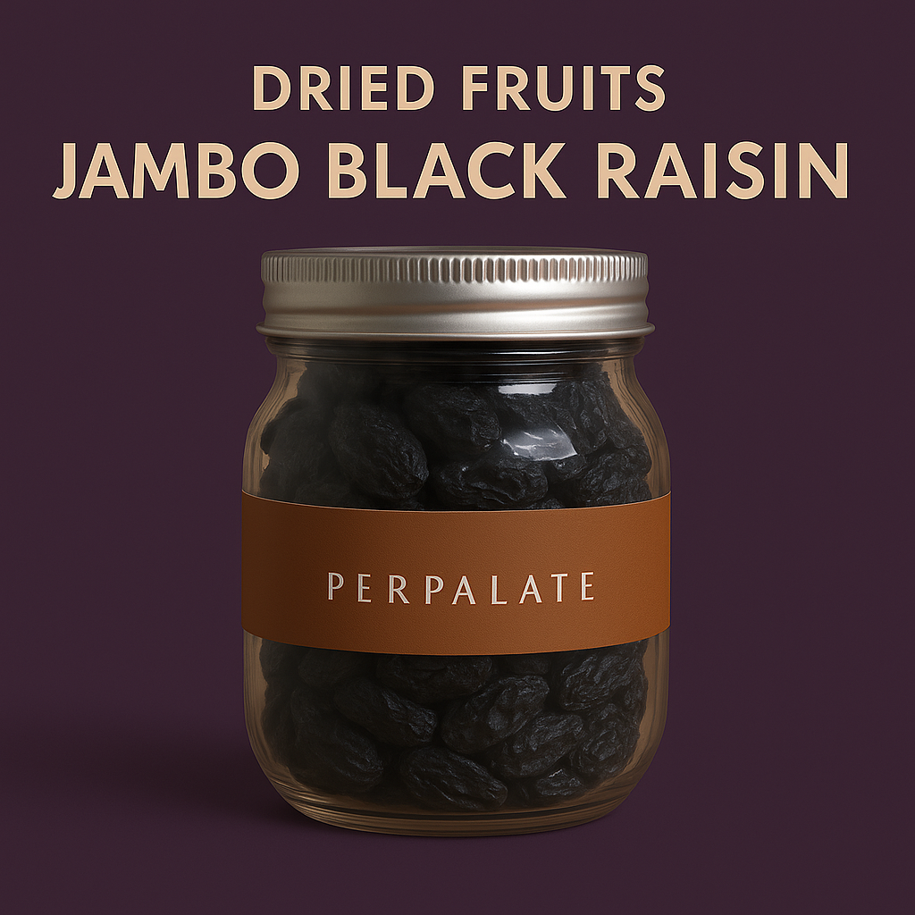 Bold in flavor and rich in natural sweetness, our Jambo Black Raisins are a true delicacy among dried fruits. Larger and juicier than regular raisins, these deep black gems are sourced from premium grapes and sun-dried to preserve their soft texture and full-bodied taste.